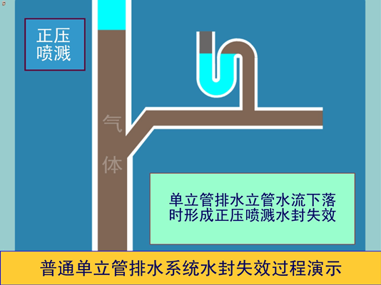普通立管排水產(chǎn)生正壓噴濺引起水封失效