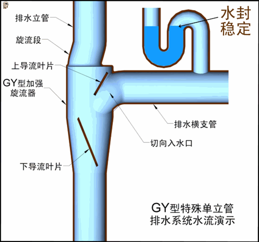 GY型特殊單立管排水系統(tǒng)有效消除管內(nèi)的正負(fù)壓,確保水封穩(wěn)定有效